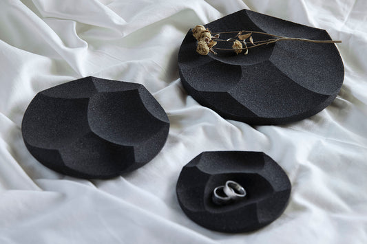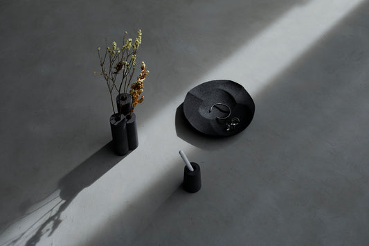 「SAHA(砂波)」砂が持つ「動き」と「静けさ」を形にしたプロダクトシリーズです。細かな粒子が集まり、自然の中に身を置き静かに固まる砂の無垢でありながらも動きのある表情と柔らかく繊細な質感。自然の中に息づくようなその一連の流れに着目し、砂の流れる形状にインスピレーションを受けました。素材の本質に寄り添いながら、人と自然の間にある繊細な調和を追求し、空間の中で佇むその存在は日々の暮らしに静かな動きを生み出します。